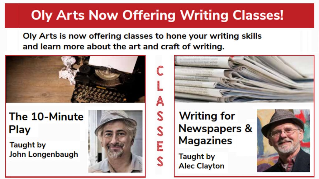 Oly Arts is now offering classes! Hone your writing skills and learn more about the art and craft of writing. Our first two classes, which take place in November 2025 and have limited space, are: John Longenbaugh teaching “The 10-Minute Play,” and Alec Clayton teaching “Writing for Newspapers & Magazines.”