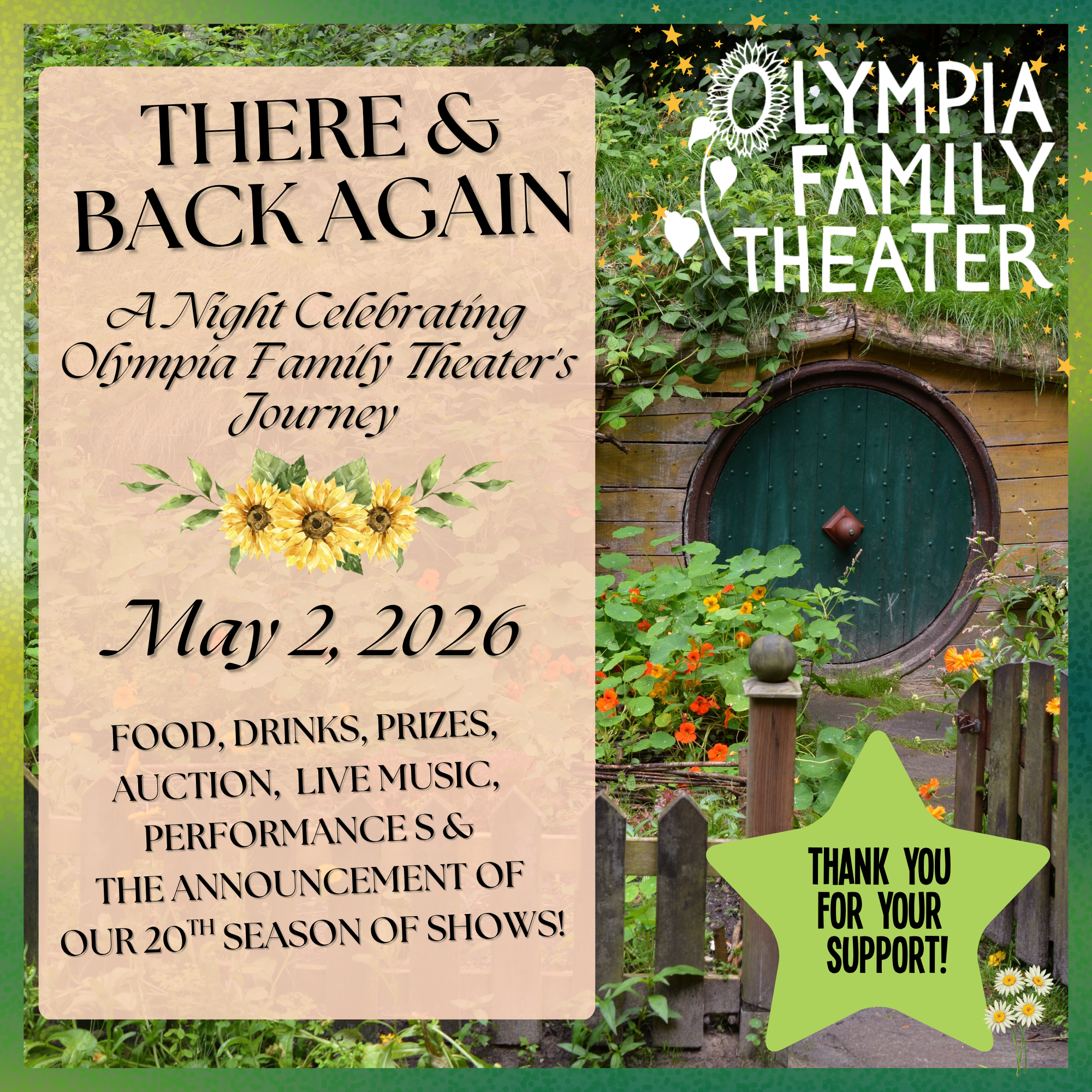 Olympia Family Theater invites you to journey through Middle Earth on May 2, 2026 at 5:30pm for a night to remember as we celebrate storytelling and community! Step into an immersive experience as you enjoy drinks at the Green Dragon, feast in true Hobbit style in the Shire, and more! Throughout the evening, guests will ...