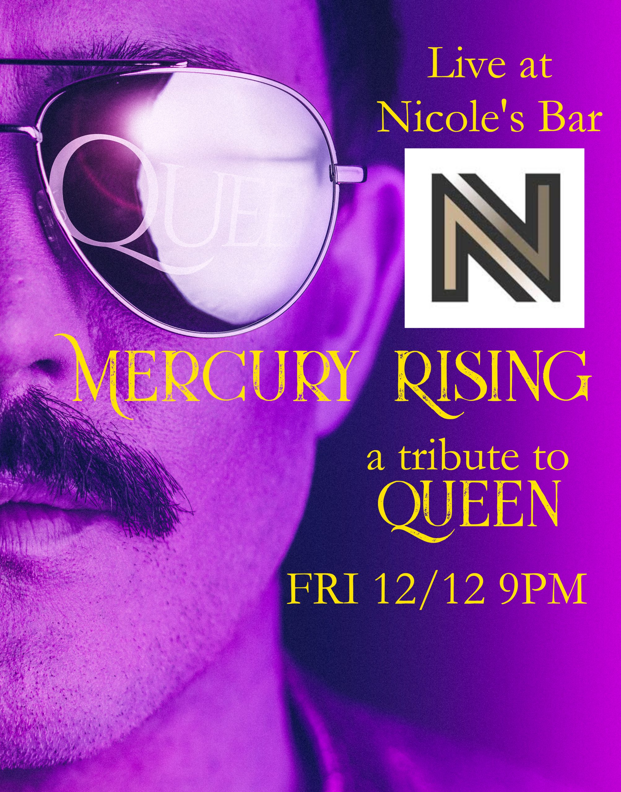 Nicole's Bar 109 Legion Way SW, Olympia, WA, United StatesJoin Mercury Rising at Nicole's Bar in Olympia for food, drinks, and singing your favorite Queen anthems of all time. 32 Queen songs. 7 performers. 1 epic experience.