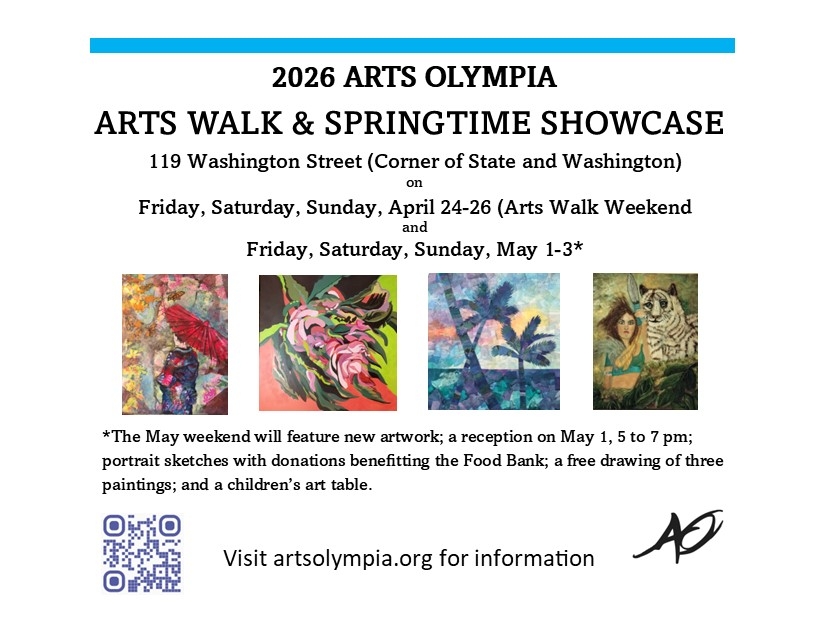 Welcome to our community calendar of arts events — the best arts calendar in the South Sound! OLY ARTS does not charge for posting arts events. Events are submitted by organizations and community members and published at OLY ARTS’ discretion. Events are not sponsored or endorsed by OLY ARTS. Please do not upload images or files larger than 1 MB. Please only post once, and your event is sent to the OLY ARTS’ Editor for review and approval.
