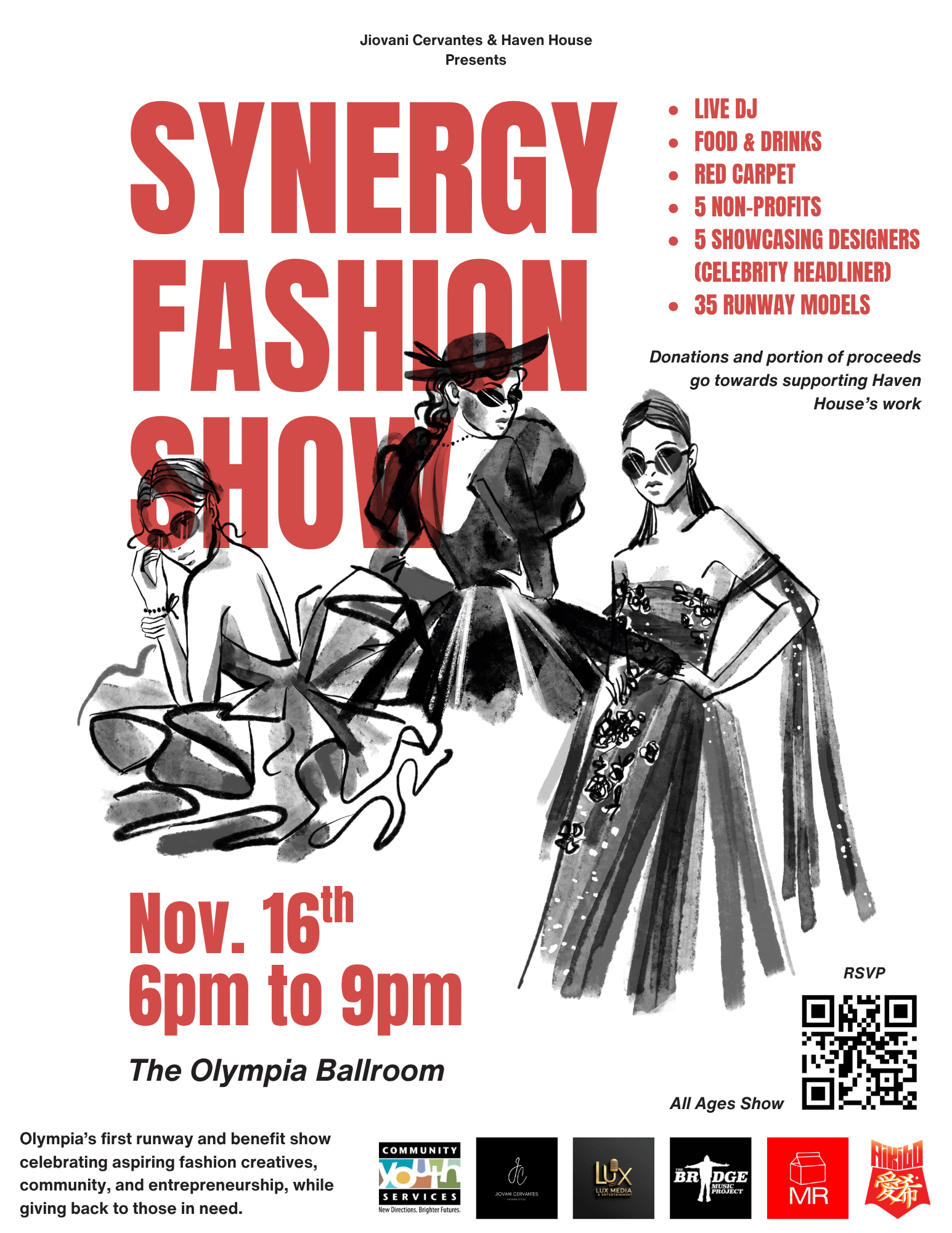 Haven House & Jiovani Cervantes Presents: Synergy, Olympia’s first all-ages runway and benefit show experience that celebrates fashion, community, and entrepreneurship, while giving back to those in need.