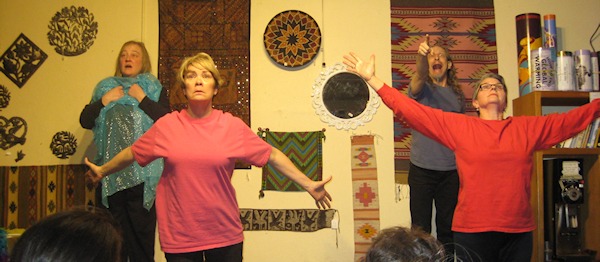 Heartsparkle Players began doing Playback Theatre in 1991 as a way to support elementary school children in developing empathy and reducing Bullying. Students told stories about when they received and gave acts of kindness. In the beginning, they performed primarily in schools and later began to do commissioned performances for organizations, faith groups and finally they added public performances. They have held their public performances at Traditions for 28 years, often collaborating with other community groups. Edden said, “They want to bring hope, stories and community to their gatherings. A few of the many groups they have collaborated with are: GRUB, The Dispute Resolution Center, Planned Parenthood Teen Council, Tenino Young at Heart Theater and Camp Quixote.